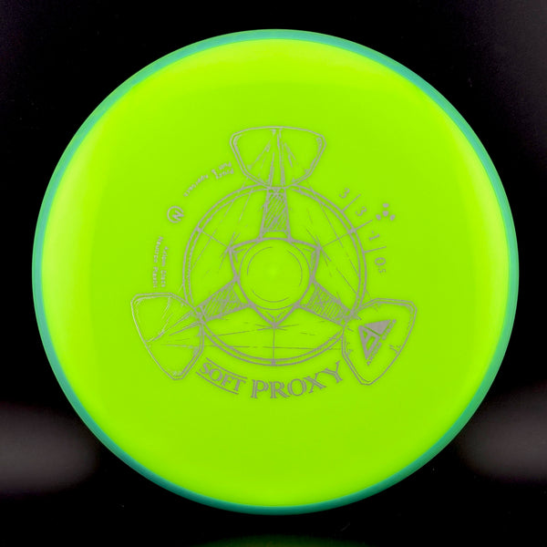 The Proxy shares the Envy mold’s core, lending the same low-profile feel and solid grip, along with a short wing width and wide flight plate diameter for superior glide. The Proxy sets itself apart from the Envy with a remarkably straight forward-fading finish. A bit of high-speed turn potential allows the Proxy’s lines to be manipulated over a broad range of power and helps less powerful throwers achieve straight putter drives.