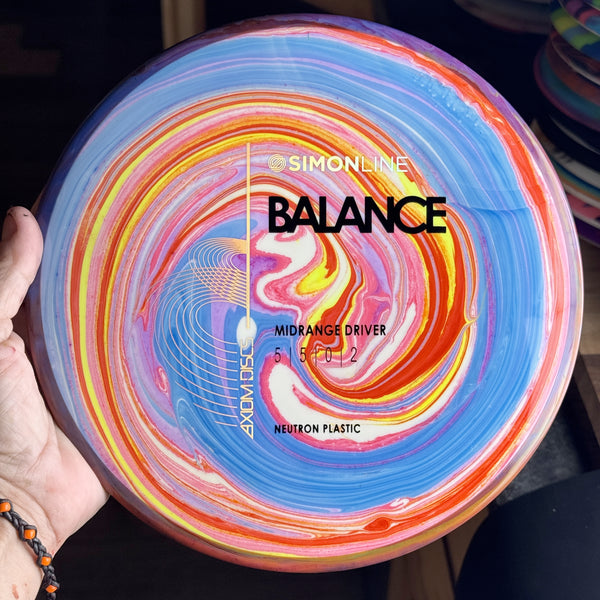 The Balance is the first midrange in the Simon Line. It features the flight numbers of 5 | 5 | 0 | 2, falling right in between the MVP Reactor and Axiom Pyro. It is overstable enough for torque resistance, wind fighting, and a reliable, consistent flight while still having the flexibility of a midrange for shot shaping. High-power players will have a versatile, straight-flying disc with a dependable bit of fade towards the end, while those with less power will find the perfect overstable wind-fighting complement to their midrange lineup. The Balance design was heavily influenced by Simon Lizotte himself.