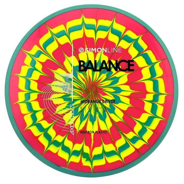 The Balance is the first midrange in the Simon Line. It features the flight numbers of 5 | 5 | 0 | 2, falling right in between the MVP Reactor and Axiom Pyro. It is overstable enough for torque resistance, wind fighting, and a reliable, consistent flight while still having the flexibility of a midrange for shot shaping. High-power players will have a versatile, straight-flying disc with a dependable bit of fade towards the end, while those with less power will find the perfect overstable wind-fighting complement to their midrange lineup. The Balance design was heavily influenced by Simon Lizotte himself.