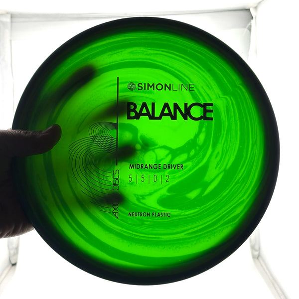 The Balance is the first midrange in the Simon Line. It features the flight numbers of 5 | 5 | 0 | 2, falling right in between the MVP Reactor and Axiom Pyro. It is overstable enough for torque resistance, wind fighting, and a reliable, consistent flight while still having the flexibility of a midrange for shot shaping. High-power players will have a versatile, straight-flying disc with a dependable bit of fade towards the end, while those with less power will find the perfect overstable wind-fighting complement to their midrange lineup. The Balance design was heavily influenced by Simon Lizotte himself.