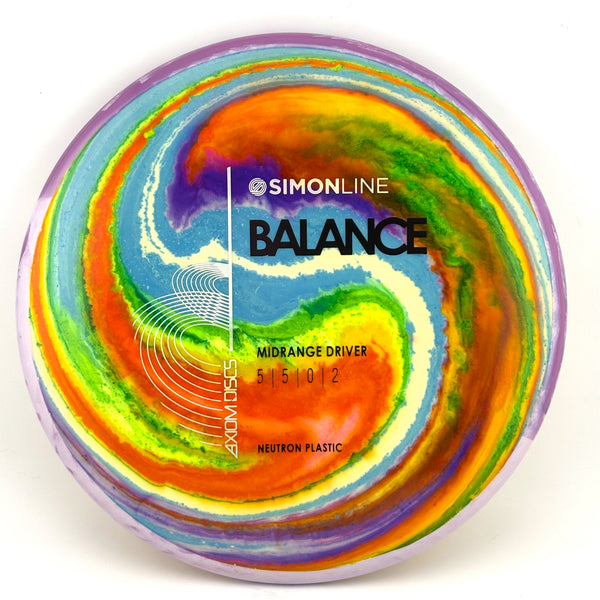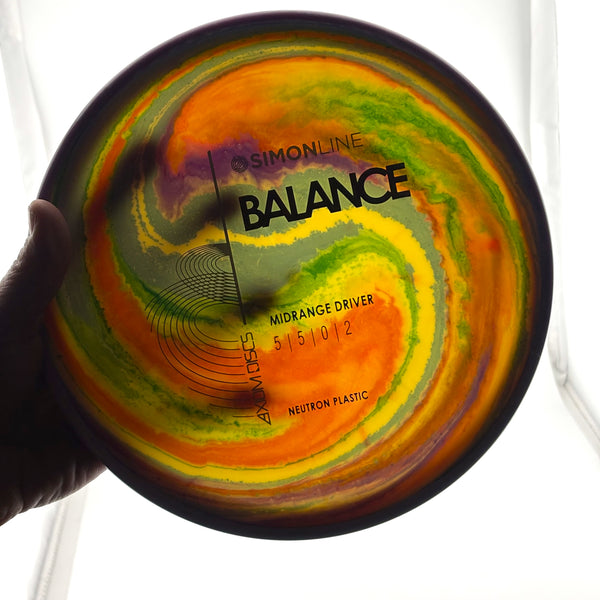 The Balance is the first midrange in the Simon Line. It features the flight numbers of 5 | 5 | 0 | 2, falling right in between the MVP Reactor and Axiom Pyro. It is overstable enough for torque resistance, wind fighting, and a reliable, consistent flight while still having the flexibility of a midrange for shot shaping. High-power players will have a versatile, straight-flying disc with a dependable bit of fade towards the end, while those with less power will find the perfect overstable wind-fighting complement to their midrange lineup. The Balance design was heavily influenced by Simon Lizotte himself.