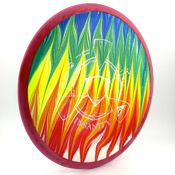 The Insanity is best described as a worn-in MVP Inertia, with slightly more high-speed turn and a diminished fade. For average power throwers, the Insanity will be remarkably straight, while high power throwers can execute precise flip and turnover lines with ease. Whether you’re looking for that sweet-spot worn disc flight, or you’re looking to achieve bigger Inertia lines with less power, give Insanity a shot.