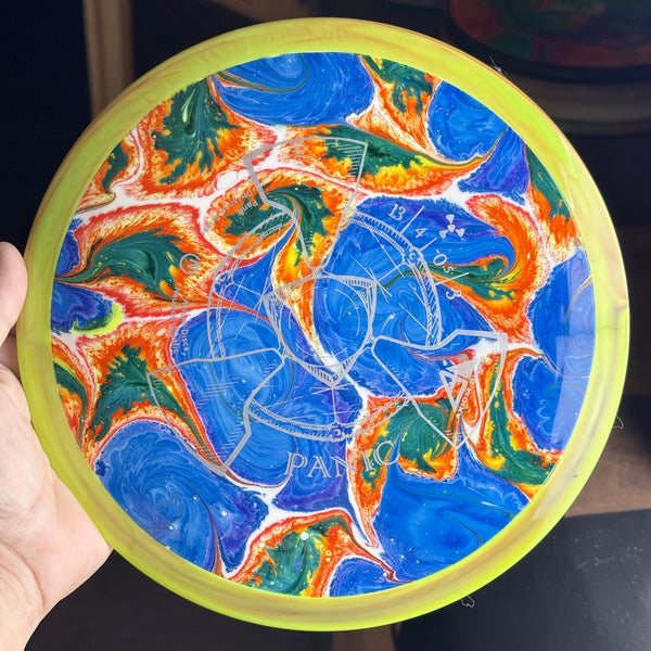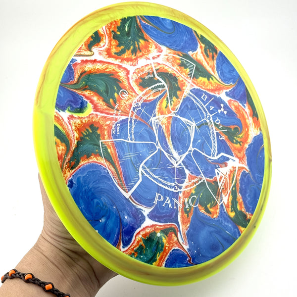 The Panic is thoroughly overstable, with plenty of beef to handle headwinds and torqued-up sidearms. Its overstability holds the Panic on any kind of hyzer line and allows steep anhyzer flex shots. For high-power throwers, the Panic will be a useful utility driver, while newer and average throwers will get an extremely overstable flight. The Panic is best described as a seasoned MVP Nitro.