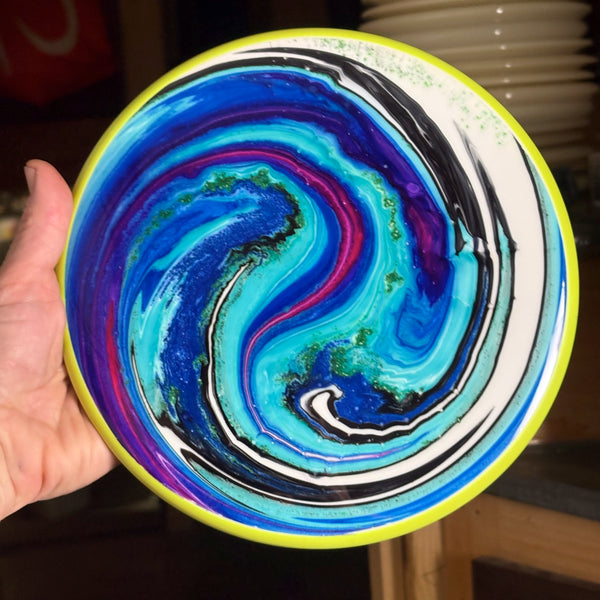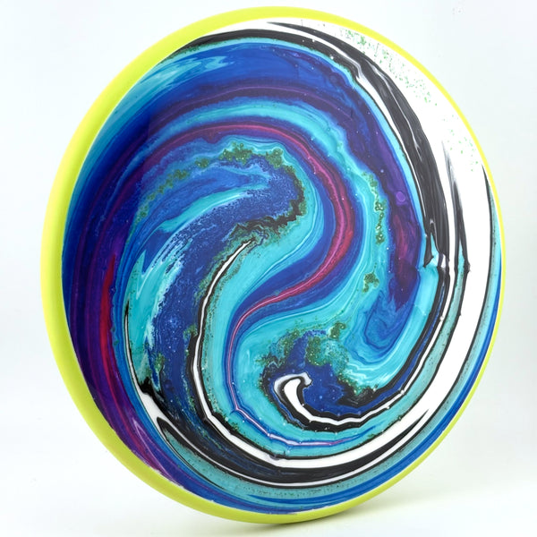 The Proxy shares the Envy mold’s core, lending the same low-profile feel and solid grip, along with a short wing width and wide flight plate diameter for superior glide. The Proxy sets itself apart from the Envy with a remarkably straight forward-fading finish. A bit of high-speed turn potential allows the Proxy’s lines to be manipulated over a broad range of power and helps less powerful throwers achieve straight putter drives.