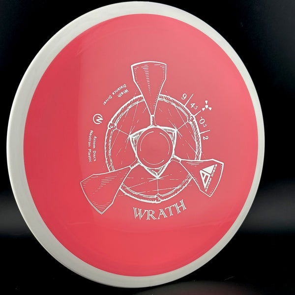 The Axiom Neutron Wrath is a popular 9-speed fairway/control driverknown for itsstable-to-overstable flight, offering a worn-in feel of the MVP Tesla but with more control, making it great for both backhand and forehand throws, especially for power throwers needing torque resistance and a reliable fade. Its durable Neutron plastic provides good grip, and its versatility allows for controlled distance, straight shots with a late fade, and dependable headwind performance.