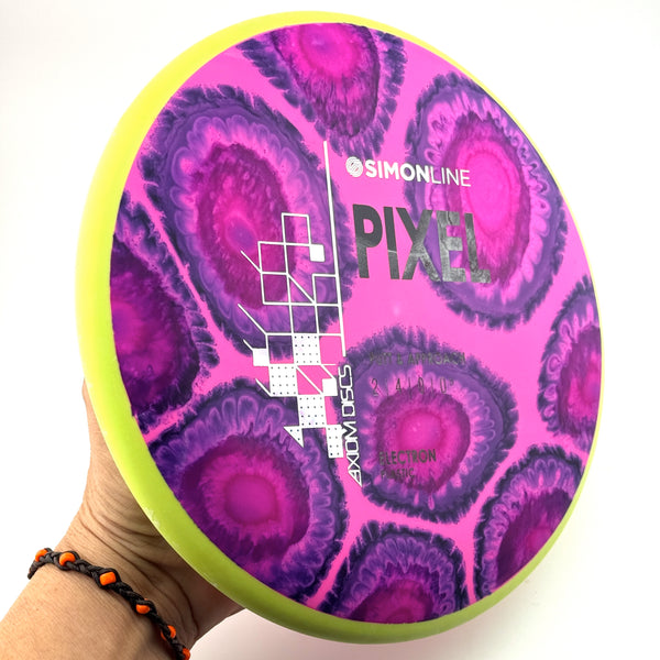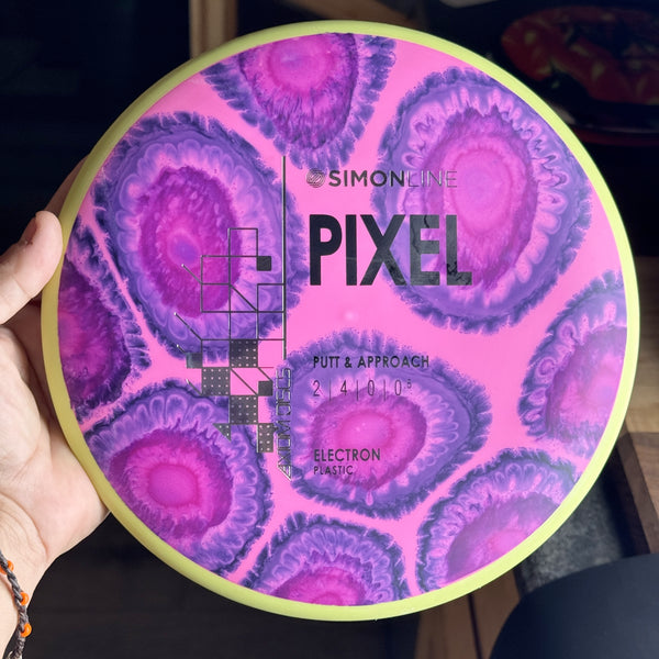 Axiom says this about the Pixel: "The second disc in the Simon Line is officially here, the Electron Pixel! Debuting with flight numbers of 2 | 4 | 0 | 0.5, the Pixel has a deep profile with a small micro bead, perfect for getting that full grip feeling. Off the tee, the Pixel is a straight/stable flier and will reliably hold any line it’s thrown on with a minimal amount of fade back. However, don’t let the low speed fool you—the Pixel can certainly go the distance, especially with the right wind conditions. On the putting green, whether you’re in C1 or C2, the Pixel shines with the right amount of glide to carry right into the chains."