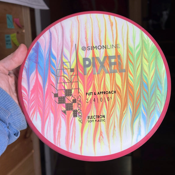 Axiom says this about the Pixel: "The second disc in the Simon Line is officially here, the Electron Pixel! Debuting with flight numbers of 2 | 4 | 0 | 0.5, the Pixel has a deep profile with a small micro bead, perfect for getting that full grip feeling. Off the tee, the Pixel is a straight/stable flier and will reliably hold any line it’s thrown on with a minimal amount of fade back. However, don’t let the low speed fool you—the Pixel can certainly go the distance, especially with the right wind conditions. On the putting green, whether you’re in C1 or C2, the Pixel shines with the right amount of glide to carry right into the chains."