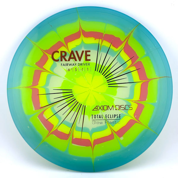 Total Eclipse plastic takes glow to the next level with glowing cores and rims in multiple color options. The Total Eclipse Crave maintains the straight, controllable flights of the mold while offering the brightest, most colorful glow in the lineup.