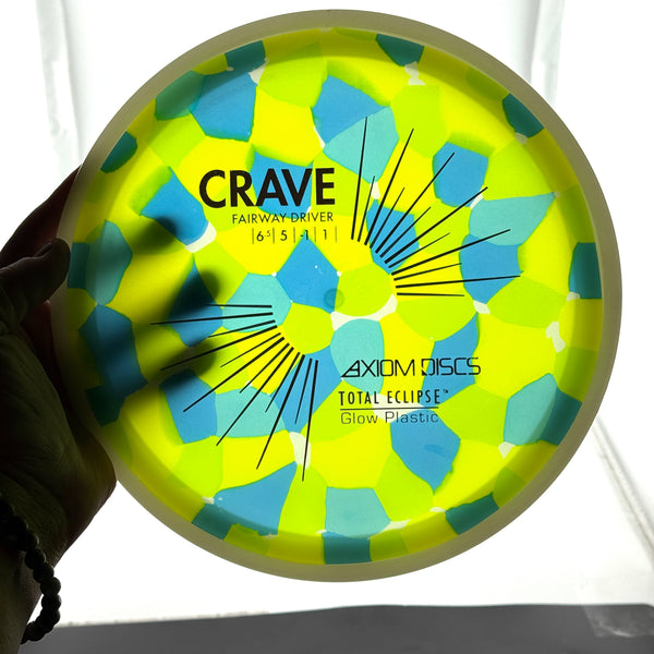 Total Eclipse plastic takes glow to the next level with glowing cores and rims in multiple color options. The Total Eclipse Crave maintains the straight, controllable flights of the mold while offering the brightest, most colorful glow in the lineup.
