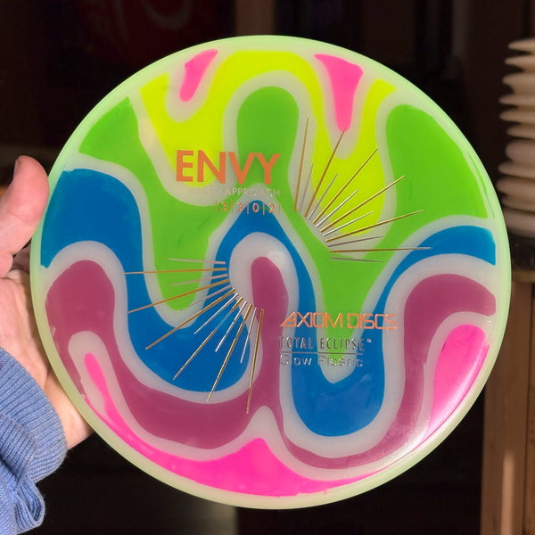 The Envy has a smooth modern feel that fits in the hand perfectly, lending confidence for both putt and approach duties. The Envy exhibits reliable high-speed stability and a minimal fade. With a slightly lower profile and cruising speed than the Ion and Anode class, the Envy is a uniquely “lid-like” stable putter.