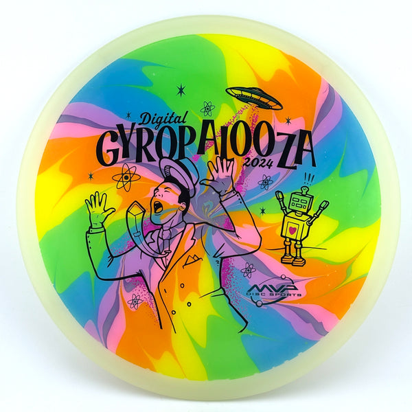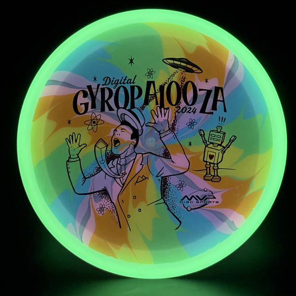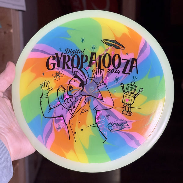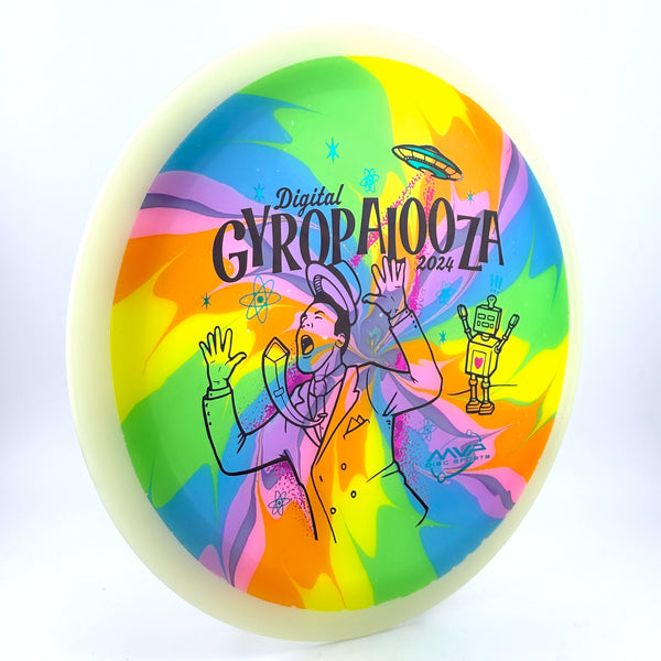 The Vanish is here and finally available in Eclipse – Total Eclipse plastic to be precise! With color glow rims and cores available in Green, Blue, Teal, White, and Purple, there’s 25 different combinations to see on this understable 11-speed distance driver. With an exclusive GYROpalooza illustration courtesy of DoubleRam Design, take your glow golf to the next level with a Total Eclipse Vanish!