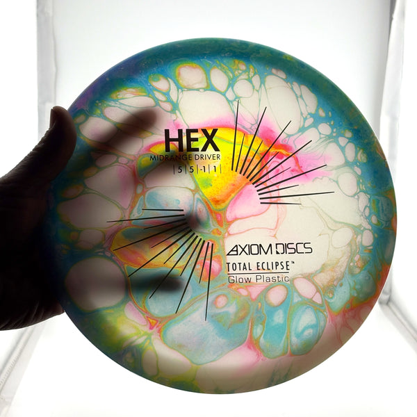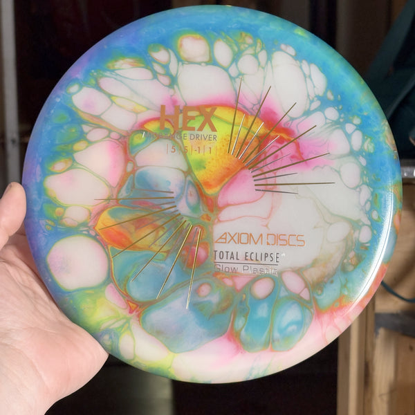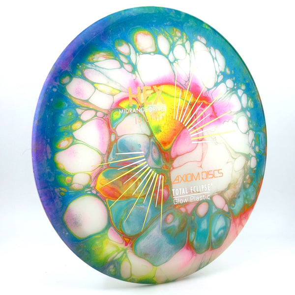 Total Eclipse Hex – This disc is the perfect complement to theMVP Reactor,while the Reactor is a touch overstable, the Total Eclipse Hex is a very, very straight Axiom midrange. It has flight characteristics that are perfect for shaping any shot you want to throw. At high speeds, it gets a touch of flip but never turns and burns. The Total Eclipse plastic is amazing plastic that is perfect for those that love night rounds. It is a great disc for shaping shots in the woods and for those touchy approach shots. Grab an Axiom Neutron Hex disc today!