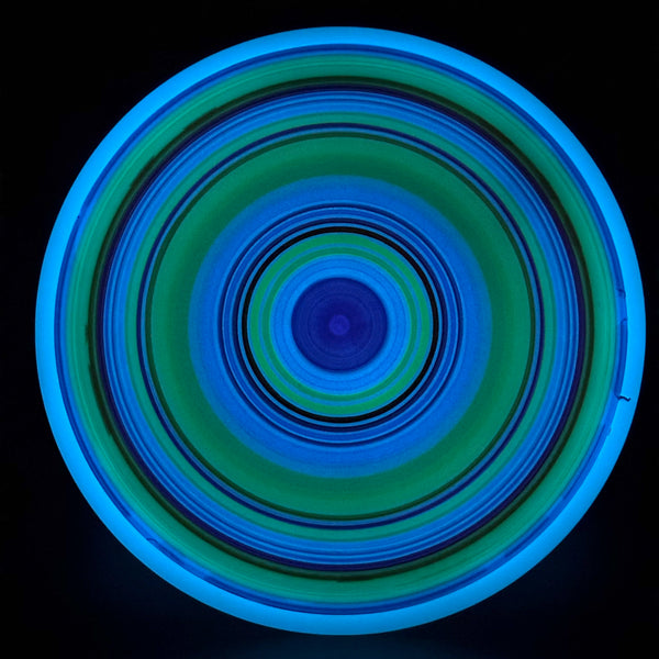 Total Eclipse plastic – thanks to MVP’s patented overmold technology – features color glow cores alongside color glow rims! The Total Eclipse Hex is available in any combination of two colors from Green, Blue, Purple, White, and Aqua
