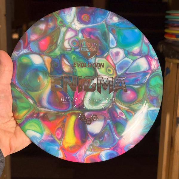 On this very first distance driver released in our Evolution line, the flight numbers really speak for themselves. Get ready to make some room in your distance compartment, because this is a disc you will find yourself relying on shot after shot. If you are struggling with the out-of-the-box overstability of some of the most popular Pro level distance drivers out there, we highly recommend giving the Enigma a spin!