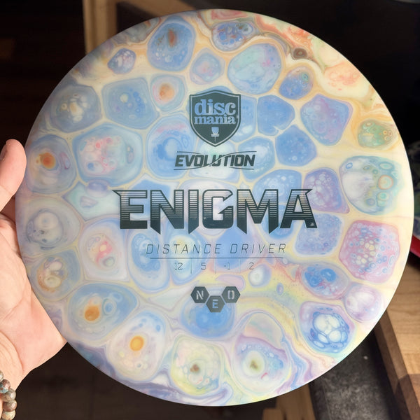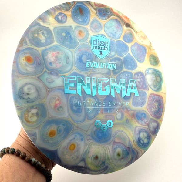 On this very first distance driver released in our Evolution line, the flight numbers really speak for themselves. Get ready to make some room in your distance compartment, because this is a disc you will find yourself relying on shot after shot. If you are struggling with the out-of-the-box overstability of some of the most popular Pro level distance drivers out there, we highly recommend giving the Enigma a spin!