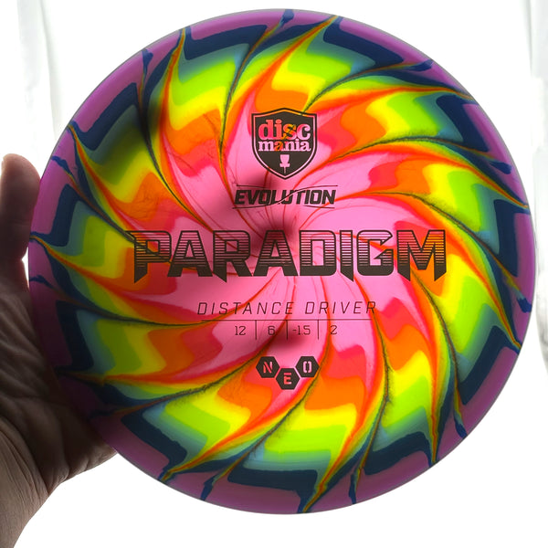Paradigm is a clear example of excellence in a distance driver. Designed to fit comfortably in hand, this speedy driver was designed specifically to have the overall feeling of fairway driver characteristics but steps it up a notch with the speed. Paradigm excels with its uncanny ability to be manipulated in flight. The slightly understable nature of the disc allows players to easily carve the fairways with “s-curve” (anhyzer) shots to various degrees, but the Paradigm is still stable enough to be thrown dead straight, and can still be thrown on reliable hyzer lines without breaking the wrong way.