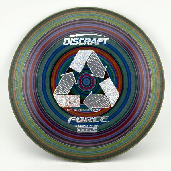 Go green with the Recycled ESP Force, a high-performance driver crafted from eco-friendly materials. This disc combines the trusted stability of the Force with a focus on sustainability, providing the same reliable flight characteristics with a more environmentally conscious approach. The Recycled ESP plastic offers a comfortable grip and durable feel, perfect for achieving long, controlled drives. With its overstable nature and high-speed design, the Recycled ESP Force excels in windy conditions and aggressive throws. It's an ideal choice for players who want to reduce their environmental impact without compromising on performance.