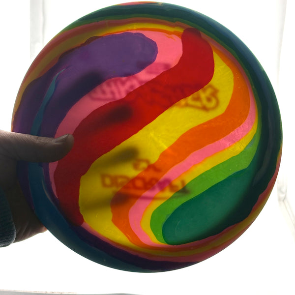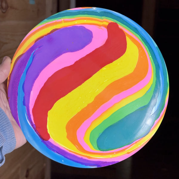 This wonderful Overstable driver if now adorned with a lovely purple, yellow, and carribean blue cell swirly