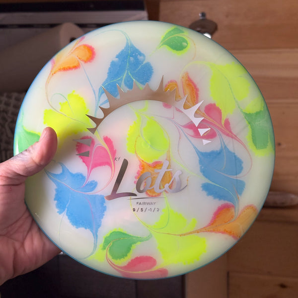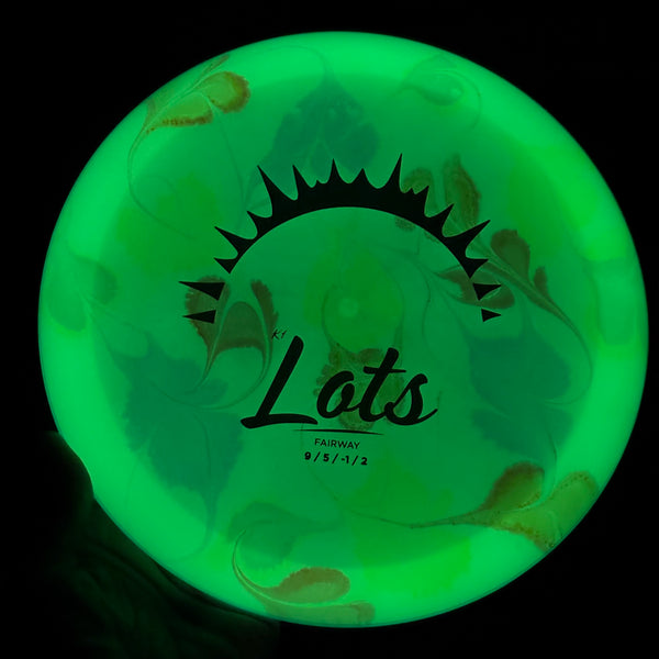Right, left or straight... The Lots leads the way through those tricky and norrow passages that you will face on your way towayrds the basket. This disc is designed as a straight flying, highly workable, fairway driver.