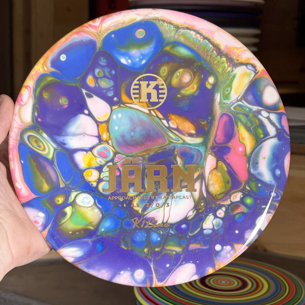 The Järn (Swedish for ‘Iron’), is the first overstable approach disc by Kastaplast. This disc has a predictable fade, giving you confidence into headwinds. It has a flat top and is perfect for control flex approach shots. Its a must have disc for players of all levels.