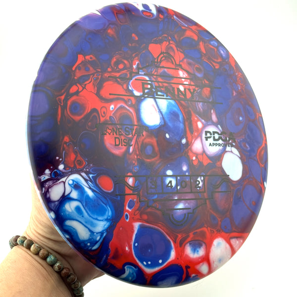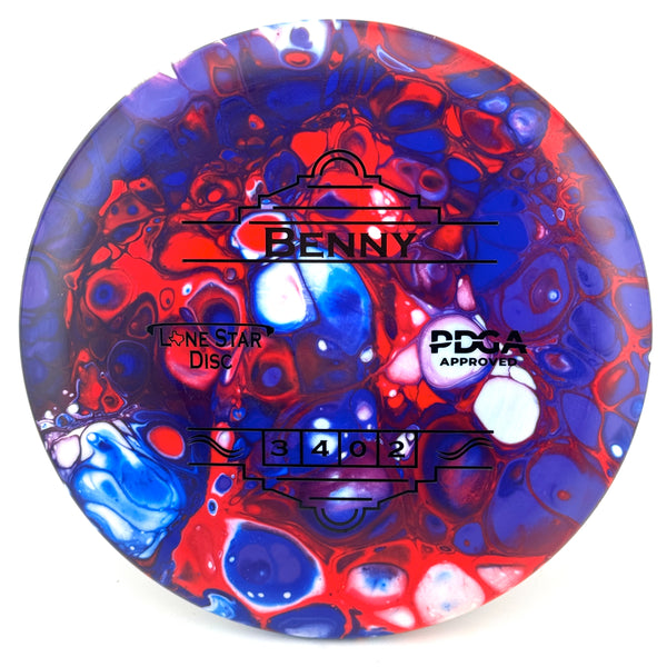 The Benny is a beaded, straight-to-stable complement to our flagship Penny Putter. It promises a consistent and straight flight with a touch a reliable fade at the end of its flight: an ideal throwing putter.