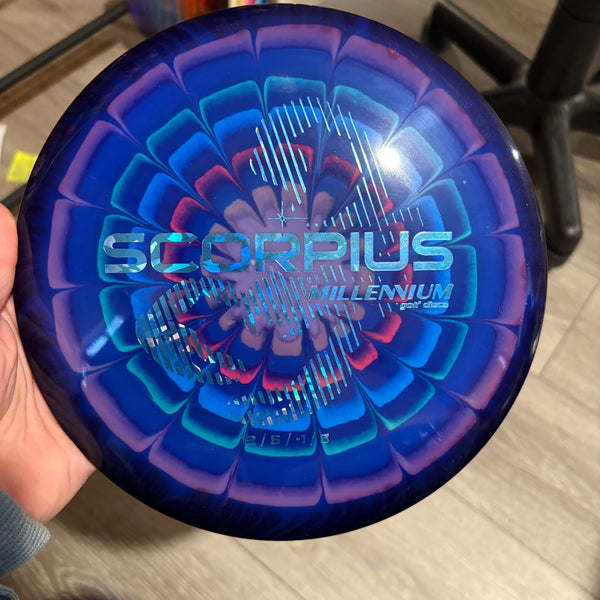 The Millennium Scorpius is a high speed, ultra-long range overstable distance driver. It is a step below the Quasar in terms of speed and fade, but will provide excellent distance and control for into-the-wind conditions. This disc golf driver is recommended for moderate-powerful throwers who need something with dependable fade and sustained glide.