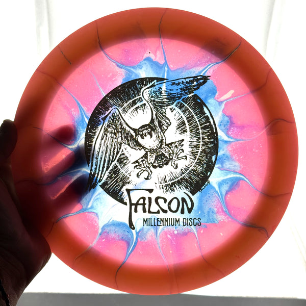 The peregrine Falcon, namesake of a star in the Aquila constellation, is known as the fastest animal on earth when doing its signature hunting dive. At speed 13, this Falcon is also extremely fast! This disc is an ultra-long-range driver that will carve up fairways long and wide. TheFalconis similar to our popular Scorpius but faster with slightly less high-speed stability. A solid turn will launch theFalconinto a ground-eating glide that, when paired with its aerodynamic wing give this disc outstanding distance. The low speed fade is reminiscent of the Scorpius which makes this disc’s finish very dependable into all but the staunchest of headwinds.