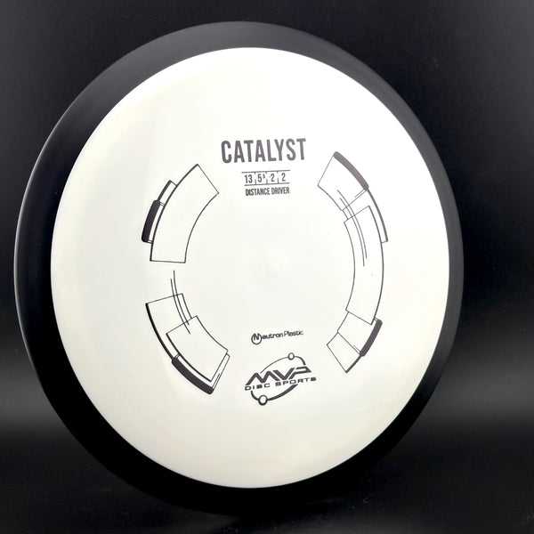 The Catalyst is a perfect starter for big distance. Its stability profile lends itself to being incredibly useful even when underpowered. Catalyst is similar to a longer Wave. High power throwers will be able to control rollers, sky anhyzers, and tight turns, while average to low power players will get easy distance with great glide, and a power responsive amount of turn-to-straight. The Catalyst is molded with the same core and nice even dome as the Octane, yielding extra glide for maximum distance shots.