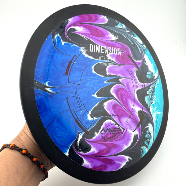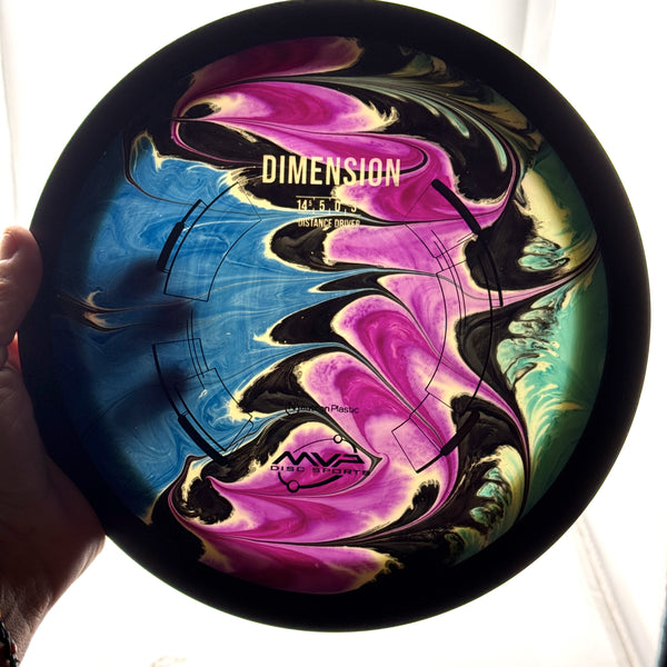 The Dimension balances overstable resistance to turn while allowing a full flight before fade. Strong throwers will see only the smallest turnover at high speeds or into headwinds. Average throwers will get all the overstability they desire from this speed class in the Dimension. With its ultra fast speed and glide-promoting dome, the Dimension’s reliable fade helps pinpoint your target from a great distance.