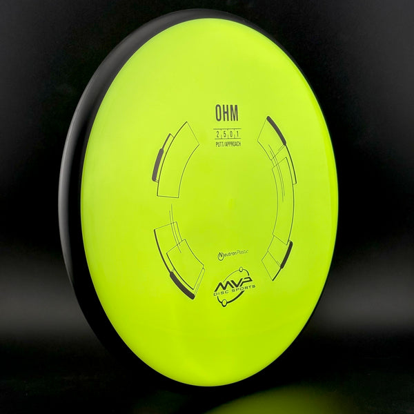 Laser straight drives and confident putts are the best ways to describe the brand new Ohm from MVP. Debuting in Neutron plastic, the Ohm is inspired by the Streamline fan-favorite Pilot, but with enhanced GYRO® effect. The results are incredible! The tried and true shape provides both a reliable grip and loads of glide for some truly impressive drives and putts. The Ohm is sure to find a place in every disc golfer’s bag and, thanks to the durability of Neutron plastic, stay there.