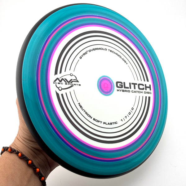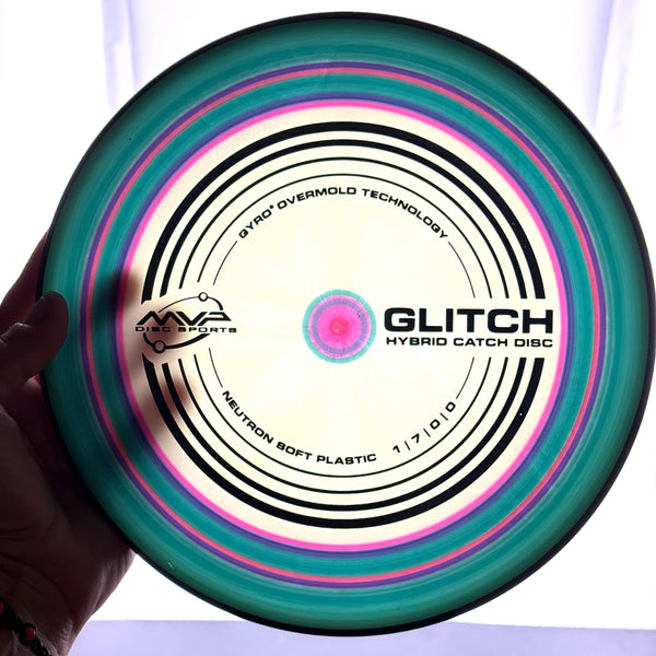 The next great experiment from MVP R&D Lab, the Glitch is a hybrid catch disc designed to blur the lines between disc golf and a catch disc. The Glitch has the diameter of a putter and is PDGA approved as well, making it truly the best of both worlds. With flight numbers of 1 | 7 | 0 | 0, the Glitch is the first MVP disc with 7 glide — just a flick of the wrist is all that stands between you and a game of catch on the beach or an approach to the green! Neutron Soft plastic makes the Glitch easily catchable when throwing around with a friend, but it also makes the Glitch an awesome approach or scramble disc because of its tendency to sit where it lands.