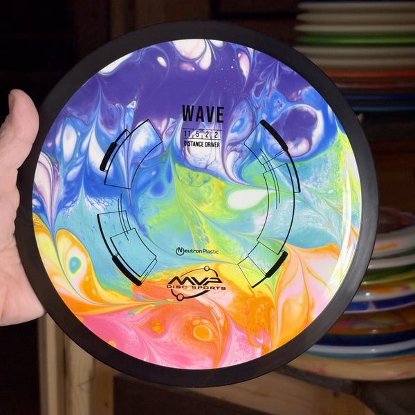 The Wave is best described as a longer Inertia, with a stable-understable flight profile and a responsiveness that makes it useful across the power spectrum. Available in weights 175g – 155g, the Wave is the type of driver that players may bag in two or more weights for shot variety. For the most powerful throws, long gliding turnovers and hyzerflip gut shots are possible with the Wave. For average powered throws the Wave will simply extend a variety of lines, from anhyzers to hyzerflips to headwind-assisted turnovers.