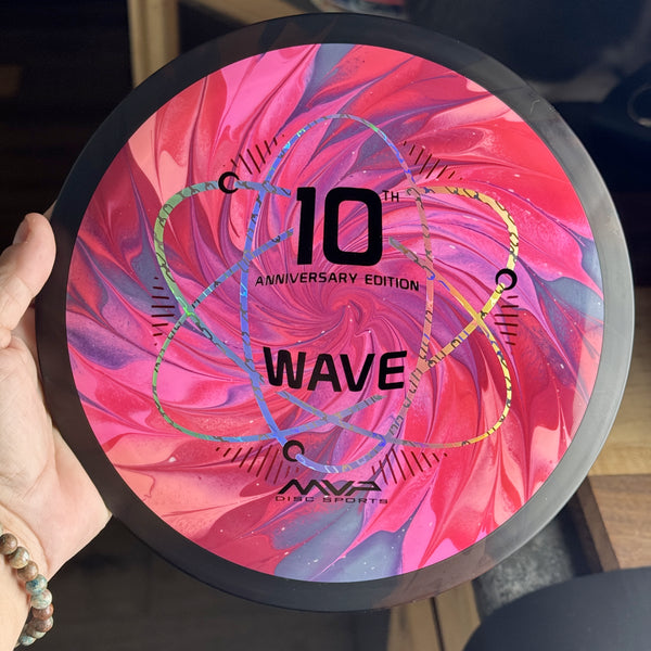 The Wave is best described as a longer Inertia, with a stable-understable flight profile and a responsiveness that makes it useful across the power spectrum. Available in weights 175g – 155g, the Wave is the type of driver that players may bag in two or more weights for shot variety. For the most powerful throws, long gliding turnovers and hyzerflip gut shots are possible with the Wave. For average powered throws the Wave will simply extend a variety of lines, from anhyzers to hyzerflips to headwind-assisted turnovers.