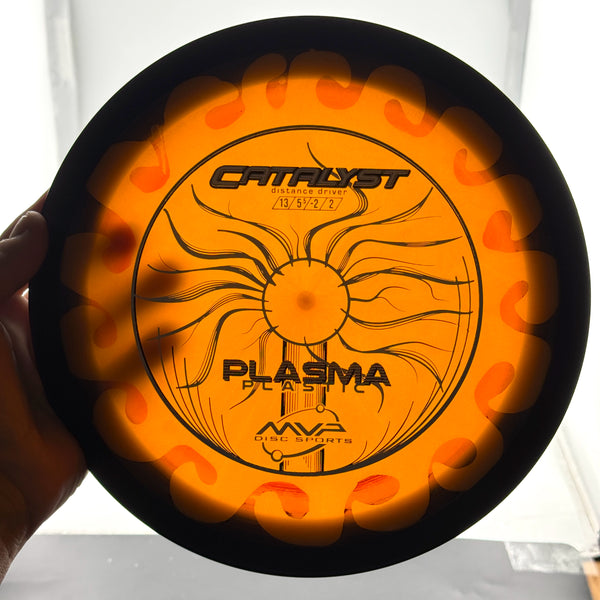 The Catalyst is a perfect starter for big distance. Its stability profile lends itself to being incredibly useful even when underpowered. Catalyst is similar to a longer Wave. High power throwers will be able to control rollers, sky anhyzers, and tight turns, while average to low power players will get easy distance with great glide, and a power responsive amount of turn-to-straight. The Catalyst is molded with the same core and nice even dome as the Octane, yielding extra glide for maximum distance shots.