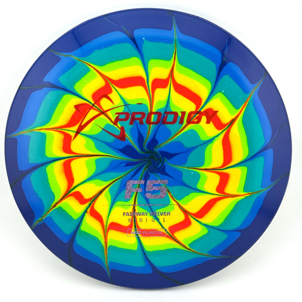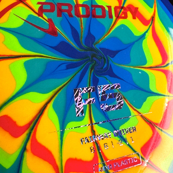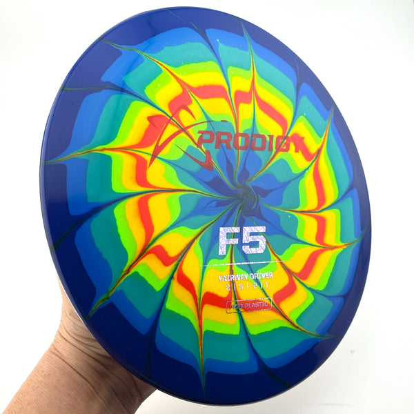 The Prodigy Disc F5 is a high speed, stable to under stable fairway driver. It is designed for all skill levels and flies extremely far and incredibly straight. The F5 will turn up slightly when thrown hard it will go into a long glide before finishing gently to the stable side.
