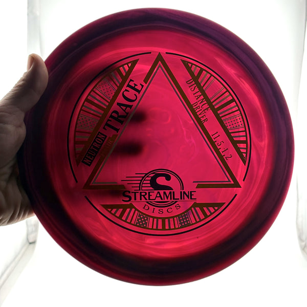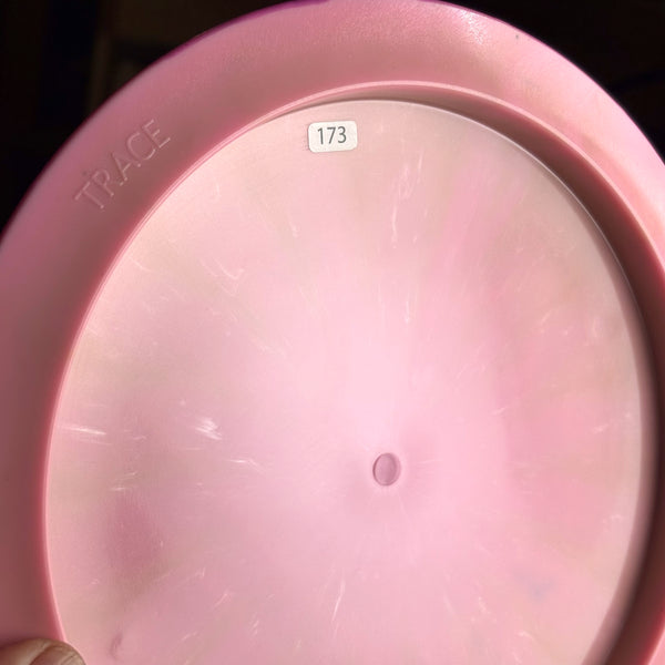 The Trace has a manageable 21mm rim width and straight-stable flight that places it squarely in the Speed 11 Power Straight market. The Trace’s moderate dome is smooth and even, with a shoulder and depth that yields excellent glide. Most players will be able to stand the Trace up on a hyzerflip, but the Trace will soak up plenty of power before being pushed off its straight line. Its ending fade is smooth but dependable for easy ranging.