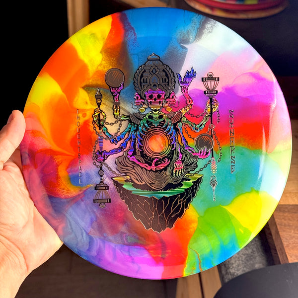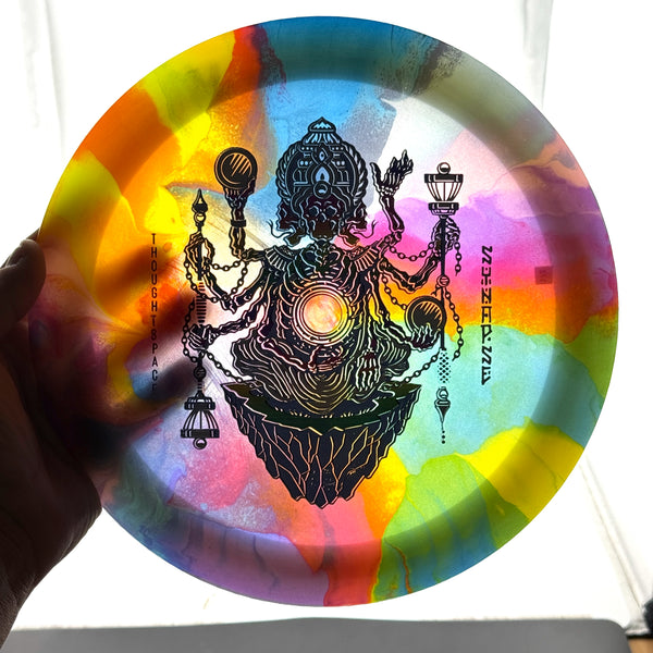 As Disc Golfers ourselves, we have spent a fair share of our time praying to the disc golf gods for added luck during a round or for some extra skill points in our game. The "DG God" design is an exploration of what one of these "Disc Golf Gods" would look like.