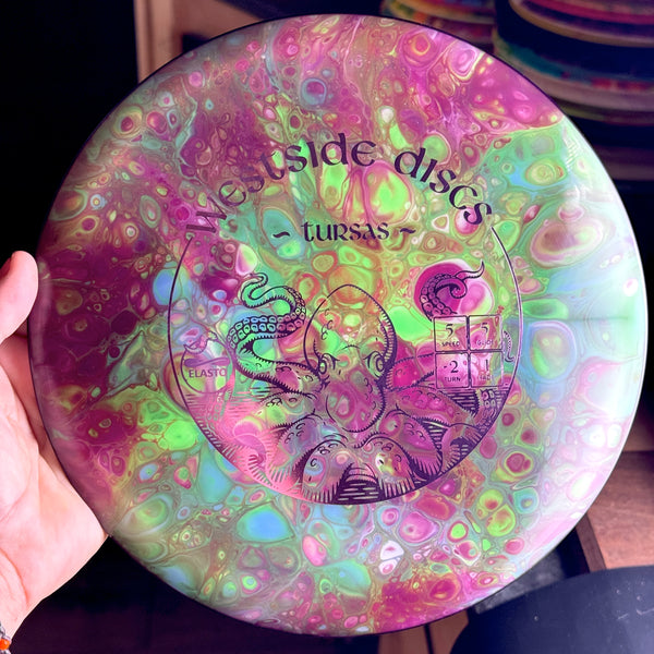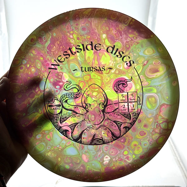 The Tursas is Westside's most controllable midrange disc. Designed with the everyday player in mind, the Tursas will make playing disc golf more fun. It should allow you to make a midrange anhyzer while you are learning to play. Great for ladies and kids as it has a shallower grip than most mid ranges available on the market. For professional players, it makes a great anhyzer midrange. For lower speed arms, it will glide straight for as long as it is in the air.