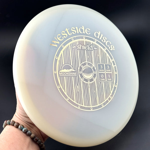 Westside's newest putter on the market, the Shield, is the next step up from the Swan. Designed with a tacky grip in the BT plastics, the Shield is a little thicker and has a small bead on the rim. It holds a stable line when throwing as an approach and a straight line into the chains while putting.