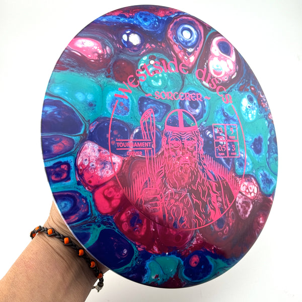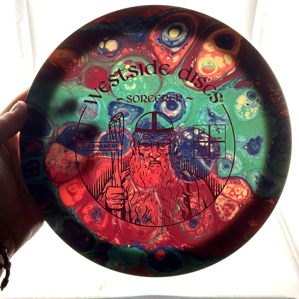 The Sorcerer is Westside's answer for a high speed disc for all skill levels. With a smaller grip than most high speed discs, the Sorcerer leaves the hand fast. For professional players, it is great for long anhyzers that actually come back when it runs out of speed. The Sorcerer provides a nice long “S” curve line. For lower arm speeds, the Sorcerer will actually get flat and glide before diving to the left. Many drivers designed for slower arm speeds have poor flight integrity. The sorcerer will give you that “pro throw” you have been looking for on the course.