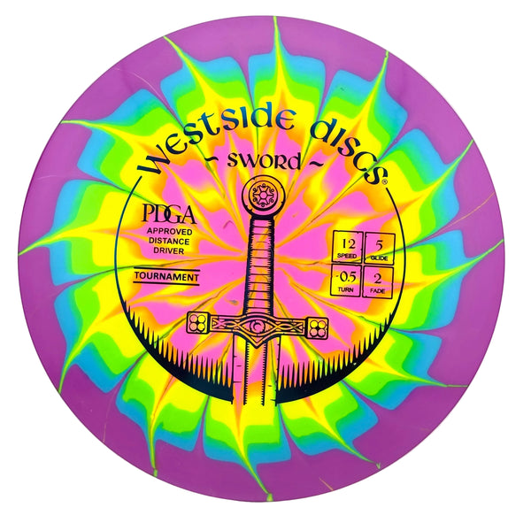 The Westside Sword is one of Westside's high speed drivers that is extremely user friendly. Designed to slice through the air with ease, the Sword will hold any line you put it on, a straight line flight with a Hyzer finish. For professional players, the Sword will fly straight, long, and predictable. For lower speed arms, the Sword will give you that extra distance you want without losing any accuracy.