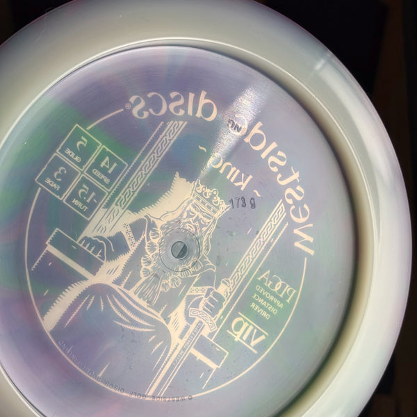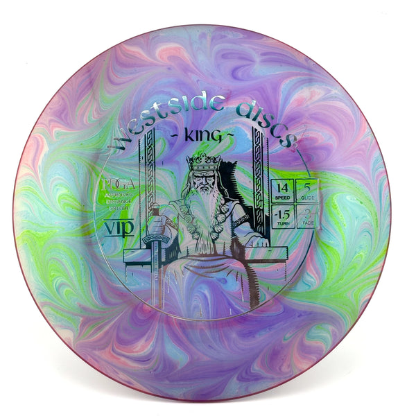 Our most popular high speed driver, the Westside King is our fastest disc for all levels of players. The farthest flying disc in our line the King is designed to allow the average player to experience a long distance flight. It has a good grip and a nice high dome. It traps the air and rides on it like you have never seen before. For professional players the King will be your longest flying disc and roller in your bag. For lower speed arms this will finally give you that full flight you always wanted on the course.