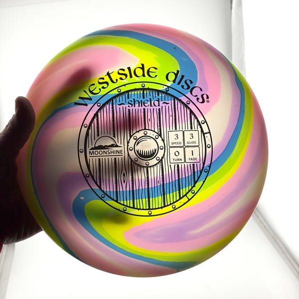 Westside's newest putter on the market, the Shield, is the next step up from the Swan. Designed with a tacky grip in the BT plastics, the Shield is a little thicker and has a small bead on the rim. It holds a stable line when throwing as an approach and a straight line into the chains while putting.