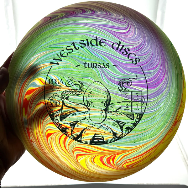 The Tursas is Westside's most controllable midrange disc. Designed with the everyday player in mind, the Tursas will make playing disc golf more fun. It should allow you to make a midrange anhyzer while you are learning to play. Great for ladies and kids as it has a shallower grip than most mid ranges available on the market. For professional players, it makes a great anhyzer midrange. For lower speed arms, it will glide straight for as long as it is in the air.